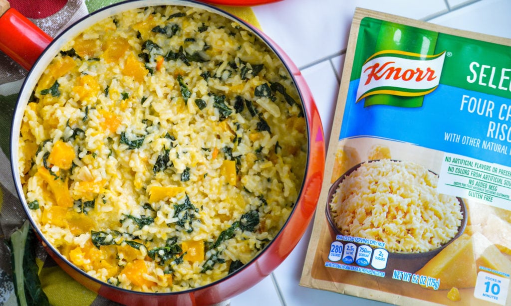 Knorr® Selects Four Cheese Risotto makes it possible to whip up a fall family meal with butternut squash, kale and four cheese risotto in less than 30 minutes.