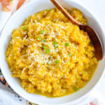 Pumpkin Cauliflower Rice risotto is a veggie-licious side dish. It’s creamy, tasty and made without rice!