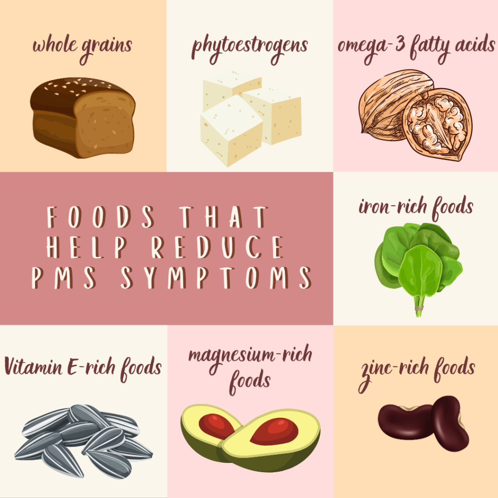 What to eat (and avoid) during each phase of the menstrual cycle. The best foods for PMS symptoms & foods that make symptoms worse.