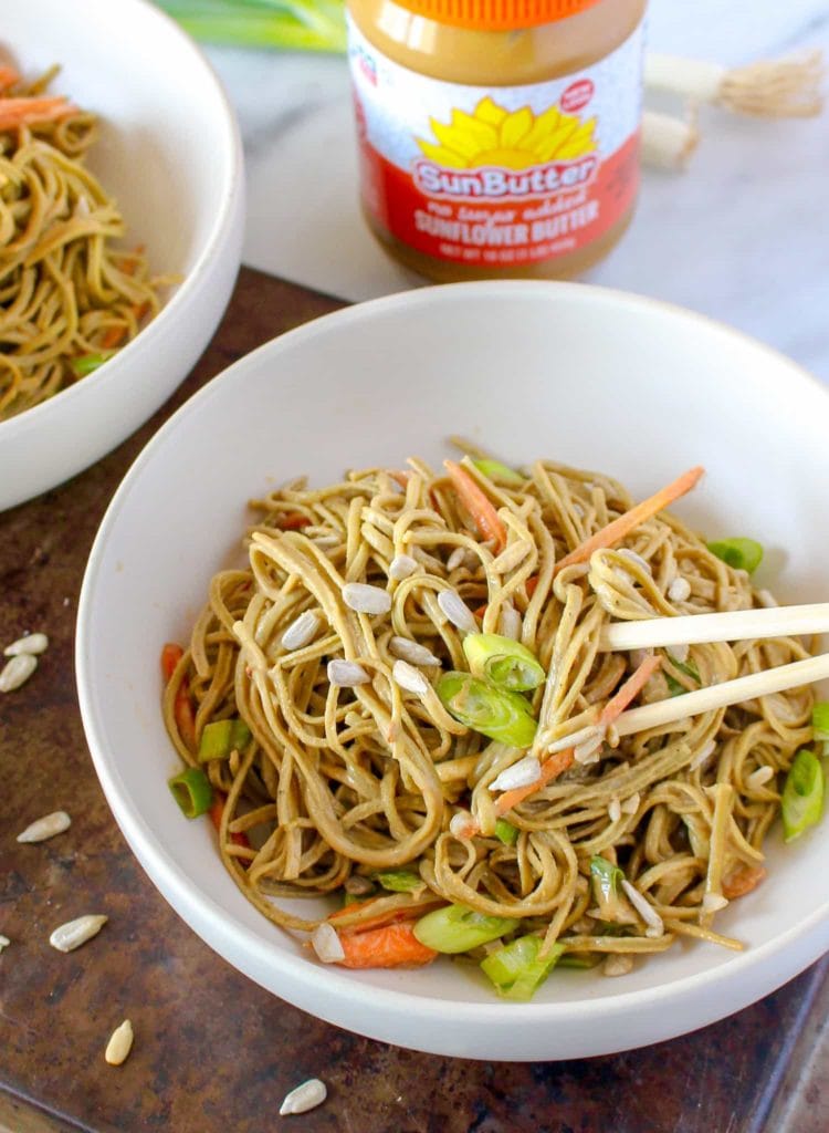For any kid who has a nut allergy, this nut-free take on a cold noodle dish is right up your alley. Made with sunflower seed butter, this pasta tastes rich without any nuts and it’s super filling and comforting.
