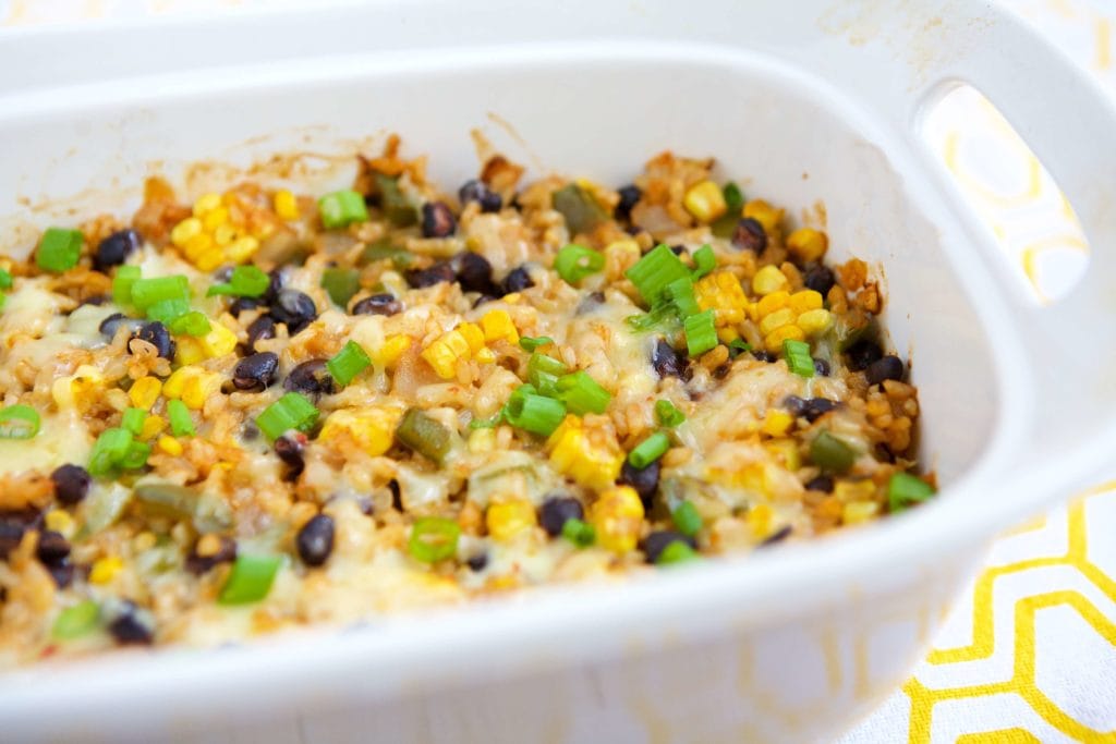 Is there anything easier than a casserole dinner? This Rice & Bean casserole with corn is hearty and filling, making it a fantastic option for kids who are growing and need a ton of energy for their sport.