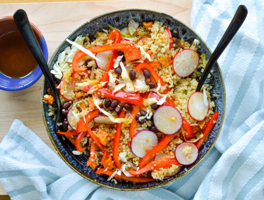 In just ½ cup, quinoa serves up 4 grams of protein and 20 grams of good-for-you carbs. Not to mention it has 2.5 grams, or 10% the daily recommendation, of filling fiber. Enjoy it sweet as a breakfast cereal or savory in a grain bowl.
