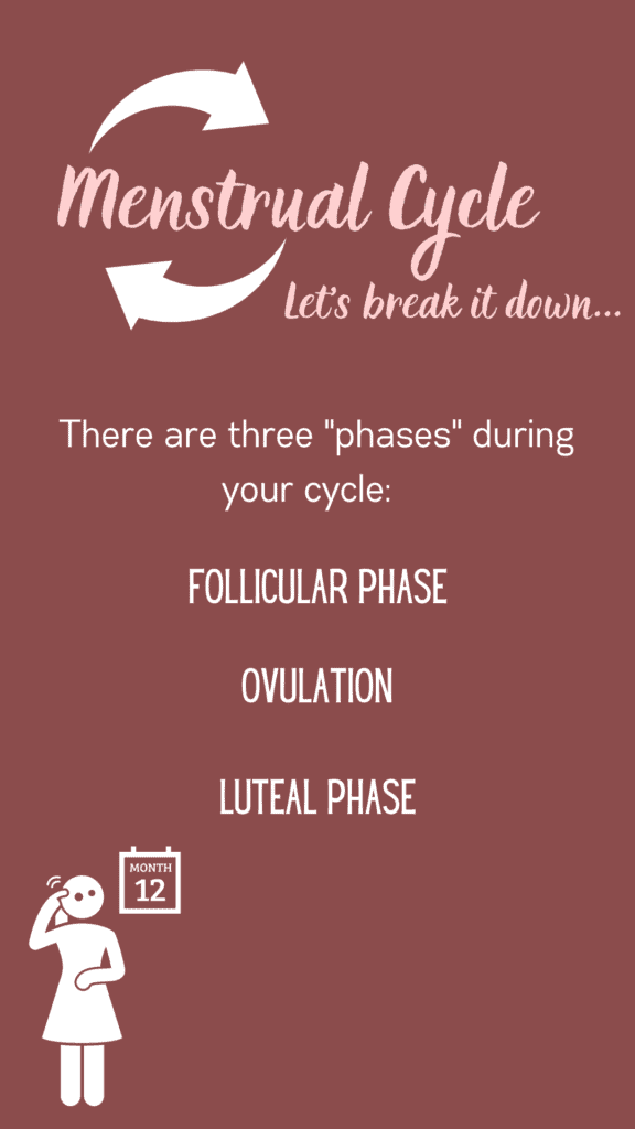 The menstrual cycle is split up into two phases: the follicular phase and the luteal phase. The follicular phase length varies more than the luteal phase, which is consistently around 12-14 days. In between these two phases, ovulation occurs. Let’s take a look at the timeline of the average menstrual cycle.