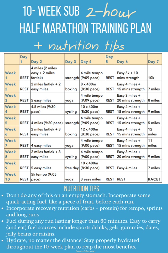 Use this free 10-week half marathon training plan to finally run a half marathon in less than 2 hours!
