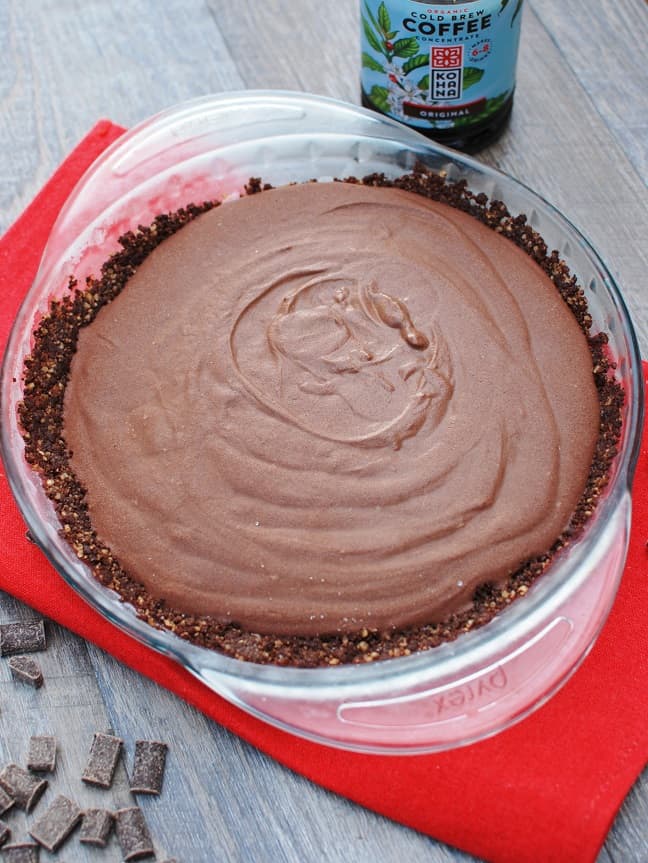 This delectable dessert combines cold brew coffee concentrate, chocolate and silken tofu for a good-for-you dessert that tastes super decadent. Plus, the recipe has a simple 3-ingredient homemade crust that doesn’t require any baking!