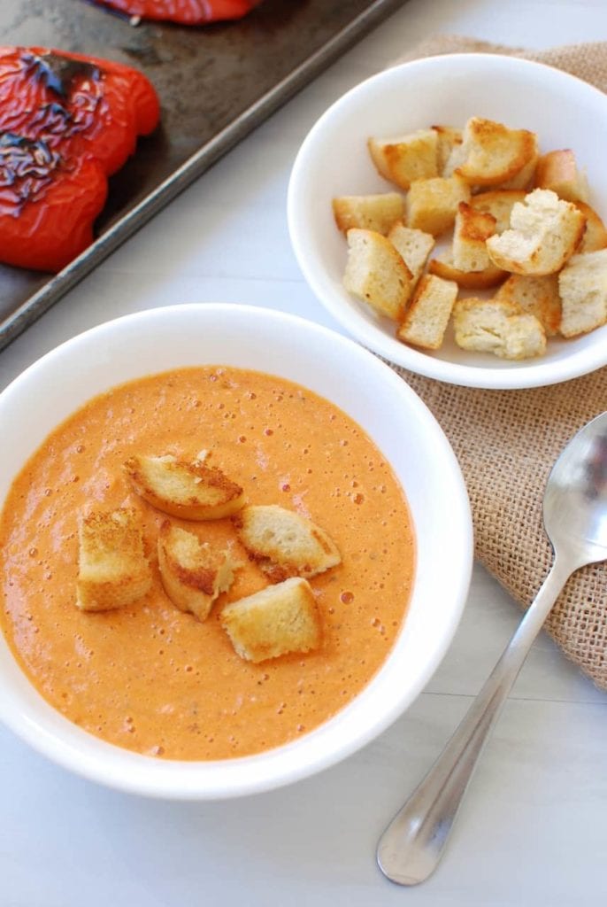 Smoky Roasted Red Pepper and Gouda Soup by Snacking in Sneakers