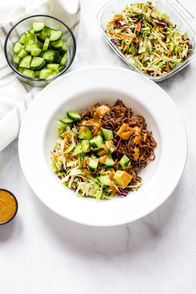 If you forgot to prep dinner or go grocery shopping, this 30 minute peanut noodle bowl is for you. It’s totally customizable, so you can use whatever vegetables or leftovers you have in your fridge.