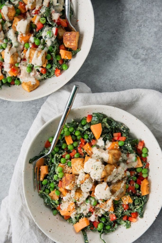 Tofu Kale Power Bowl with Tahini Dressing by Sharon Palmer
