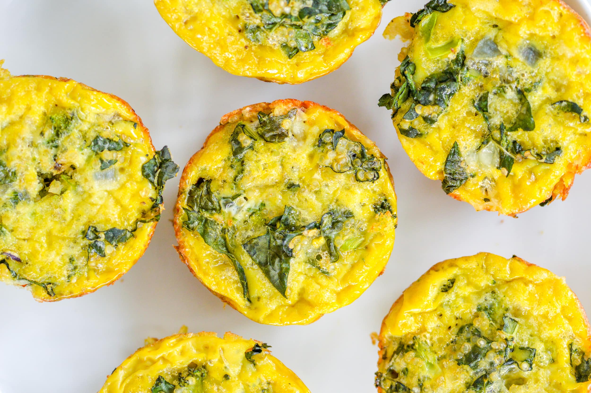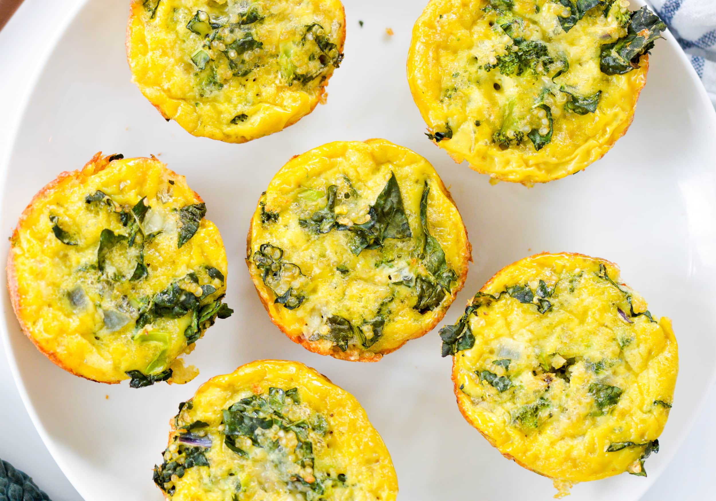 These healthy make-ahead egg cups have quinoa, kale, broccoli and cheddar cheese for a quick and portable high protein and veggie packed breakfast!