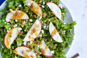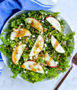It’s apple week on Nutrition à la Natalie! Really, not really. I still do have a ton of apple from our apple picking adventures, and I did just publish this Slow Cooker Apple Butter yesterday. But I’ve also had this salad on the brain for a while.